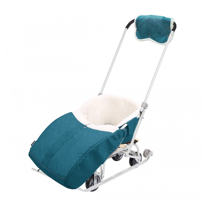 Санки детские NIKKI 3 (ВЫДВИЖНЫЕ КОЛЕСА) с набором аксессуаров СИНИЙ МЕЛАНЖ