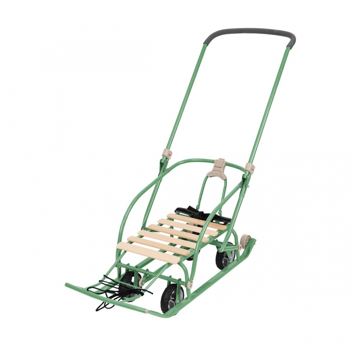 Санки детские NIKKI 3/ОЛ (ВЫДВИЖНЫЕ КОЛЕСА) (СКЛАДНАЯ СПИНКА, СКЛАДНАЯ РУЧКА) ОЛИВКОВЫЙ