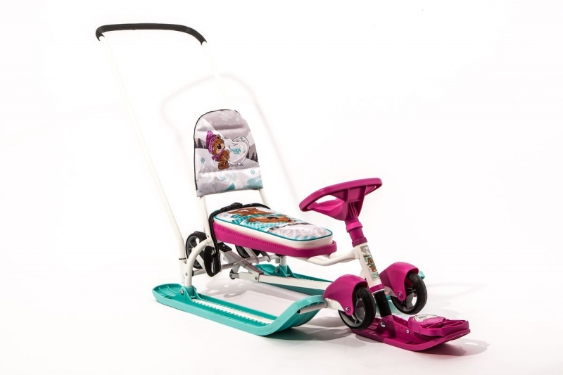Снегокат Тимка СПОРТ 6 (ЗАБАВНЫЕ МЕДВЕЖАТА) ВЫДВИЖНЫЕ КОЛЕСА СО СПИНКОЙ (упак. 1 шт.)