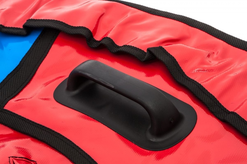 - На бортах тюбинга находятся 4 лодочные резинопластиковые ручки. Ручки надёжно вклеены в ПВХ материал спец.клеем.