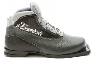Ботинки лыжные 75 мм CLASSIC COMFORT (кожа-мех) СЕРЫЙ-ЧЕРНЫЙ 43 р.(после фото), пар